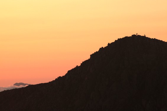 Every now and then you’re presented with a forecast so good that it can’t be ignored, even on a weekday, so we’ve pioneered the concept of ‘Munro Mondays’ – straight up a summit after work, camp / bivi on top and descend at sunrise to hopefully be back at the desk, in body if not in mind, by 9 am (a Munro is a Scottish hill over 3000 feet, roughly 920 metres). Last Monday looked promising so a few of us decided to head up the western summit of Ben Cruachan (Stob Dearg). I took a direct but boggy route up, and as it turned out, the others came up via the dam and camped at the saddle so I had the summit to myself.