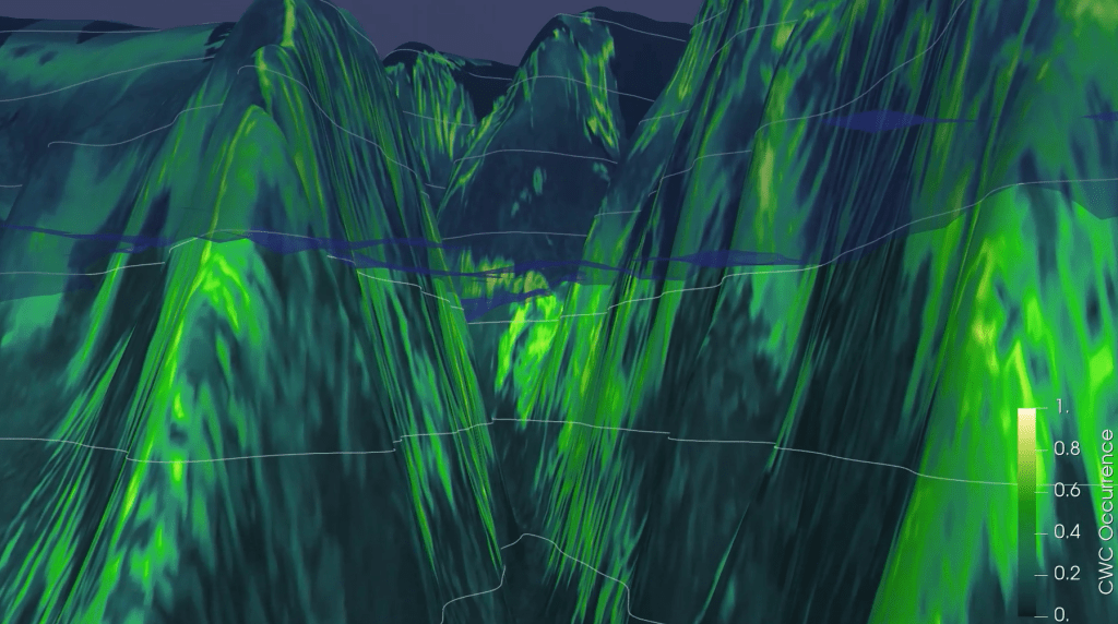 This animation is constructed using two hydrodynamic models; AMM15, which is a NEMO-based model of the European shelf (Graham et al., 2019) for the large scale velocities, and a high resolution model of Whittard Canyon (Aslam et al., 2018) for the detail. Many thanks to Dr. Veerle Huvenne for suggesting the collaboration.